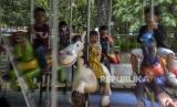 Sejumlah anak menaiki salah satu wahana permainan di Taman Lalu Lintas Ade Irma Suryani Nasution, Jalan Belitung, Sumur Bandung, Kota Bandung, Kamis (29/12/2022). Objek wisata yang menawarkan konsep edukasi penyuluhan dan pendidikan keamanan lalu lintas tersebut menjadi salah satu tujuan wisata warga saat libur sekolah pada akhir tahun. Jumlah kunjungan di objek wisata tersebut sebanyak 1.500 orang per harinya. Republika/Abdan Syakura (FOTO : ABDAN SYAKURA/REPUBLIKA)