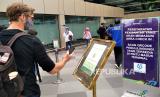 Penumpang memindai aplikasi peduli lindungi di terminal keberangkatan Bandara Internasional Yogyakarta (YIA), Kulonprogo, Yogyakarta, Jumat (30/12/2022). Sepanjang 2022, manajemen YIA telah melayani 2,91 juta penumpang hingga 27 Desember lalu. Atau naik dua kali lipat dibandingkan tahun lalu sebesar 1,4 juta penumpang. Momen libur Nataru 2022/2023 PT Angkasa Pura (AP) 1 sebagai pengelola YIA mencatat trafik penumpang tertinggi pada 23 Desember sebanyak 13.448 penumpang. Persentasenya naik 104 persen dibandingkan tahun lalu. Untuk puncak arus balik libur Nataru 2023 diprediksi pada 3 hingga 4 Januari 2023 dengan perkiraan penumpang sekitar 14 ribu orang. (FOTO : Republika/Wihdan Hidayat)