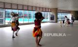 Penumpang melihat pertunjukan kesenian di terminal Bandara Internasional Yogyakarta (YIA), Kulonprogo, Yogyakarta, Jumat (30/12/2022). Sepanjang 2022, manajemen YIA telah melayani 2,91 juta penumpang hingga 27 Desember lalu. Atau naik dua kali lipat dibandingkan tahun lalu sebesar 1,4 juta penumpang. Momen libur Nataru 2022/2023 PT Angkasa Pura (AP) 1 sebagai pengelola YIA mencatat trafik penumpang tertinggi pada 23 Desember sebanyak 13.448 penumpang. Persentasenya naik 104 persen dibandingkan tahun lalu. Untuk puncak arus balik libur Nataru 2023 diprediksi pada 3 hingga 4 Januari 2023 dengan perkiraan penumpang sekitar 14 ribu orang. (FOTO : Republika/Wihdan Hidayat)