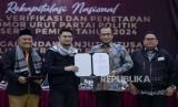 REPUBLIKA.CO.ID, JAKARTA -- Komisi Pemilihan Umum menambah satu partai lagi sebagai peserta pemilu pada Rekapitulasi Hasil Verifikasi dan Penetapan Nomor Urut Partai Politik Peserta Pemilu Sebagai Tindak Lanjut Putusan Bawaslu terhadap Partai Ummat di Jakarta, Jumat (30/12/2022).