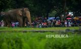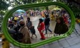 Sejumlah pengunjung memadati Taman Margasatwa Ragunan di Jakarta, Ahad (1/1/2023). Taman Margasatwa Ragunan tersebut masih menjadi tujuan wisata yang diminati warga Jakarta dan sekitarnya pada Libur awal tahun baru 2023. Walau sejak pagi dilanda hujan yang cukup awet tidak menyurutkan warga untuk tetap berlibur. (FOTO : Republika/Prayogi)