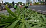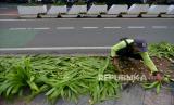 Dinas Pertamanan DKI melakukan perbaikan sejumlah tanaman yang rusak di sekitar kawasan Bundaran HI.