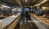 Suasana kios ikan laut yang kosong di Pasar Kosambi, Kota Bandung, Senin (2/1/2023). Menurut pedagang di pasar tersebut, pasokan ikan laut segar yang berkurang akibat cuaca buruk beberapa hari terakhir mengakibatkan naiknya harga sejumlah ikan laut antara Rp5 ribu hingga Rp20 ribu. Sementara itu, beberapa pedagang lebih memilih untuk tidak membuka kiosnya lantaran tidak ada stok ikan. Republika/Abdan Syakura (FOTO : ABDAN SYAKURA/REPUBLIKA)