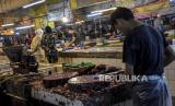 Pedagang ikan laut beraktivitas di kiosnya di Pasar Kosambi, Kota Bandung, Senin (2/1/2023). Menurut pedagang di pasar tersebut, pasokan ikan laut segar yang berkurang akibat cuaca buruk beberapa hari terakhir mengakibatkan naiknya harga sejumlah ikan laut antara Rp5 ribu hingga Rp20 ribu. Sementara itu, beberapa pedagang lebih memilih untuk tidak membuka kiosnya lantaran tidak ada stok ikan. Republika/Abdan Syakura (FOTO : ABDAN SYAKURA/REPUBLIKA)