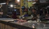 Pedagang ikan melayani pembeli di Pasar Kosambi, Kota Bandung, Senin (2/1/2023). Menurut pedagang di pasar tersebut, pasokan ikan laut segar yang berkurang akibat cuaca buruk beberapa hari terakhir mengakibatkan naiknya harga sejumlah ikan laut antara Rp5 ribu hingga Rp20 ribu. Sementara itu, beberapa pedagang lebih memilih untuk tidak membuka kiosnya lantaran tidak ada stok ikan. Republika/Abdan Syakura (FOTO : ABDAN SYAKURA/REPUBLIKA)