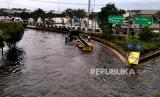 Tingginya curah hujan menyebabkan ruas jalan raya Semarang-Demak terganggu..