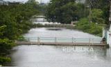 Sungai masih penuh dengan air di Kawasan Kaligawe, Semarang, Jawa Tengah, Senin (2/1/2023). Tingginya curah hujan di Semarang menyebabkan ruas jalan raya Semarang-Demak terganggu. Saat ini hanya bisa dilewati oleh kendaraan besar. (FOTO : Republika/Wihdan Hidayat)