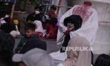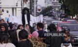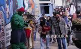 Pengunjung memadati kawasan wisata cosplay, di Jalan Asia Afrika, Alun-alun Kota Bandung, Senin (2/1/2022). Kawasan jantung Kota Kembang ini menjadi favorit pengunjung khususnya yang datang dari luar kota, di masa libur sekolah dan tahun baru. (FOTO : Edi Yusuf/Republika)