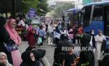 REPUBLIKA.CO.ID,BANDUNG -- Kedatangan dan keberangkatan pengunjung di halte bus, kawasan Alun-alun Kota Bandung, Jalan Asia Afrika, Senin (2/1/2022).