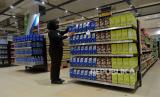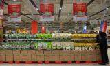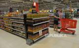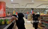 Warga mencari produk makanan dan minuman di Transmart Cempaka Putih, Jakarta, Senin (2/1/2023). Badan Pusat Statistik (BPS) mencatat inflasi Desember 2022 sebesar 0,66% secara bulanan (month to month/mtm) dan tahunan 5,51% (year on year/yoy). Inflasi Desember disumbang oleh makanan, minuman, dan tembakau. Republika/Prayogi. (FOTO : Republika/Prayogi)