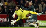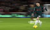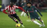 Mohamed Salah gagal menceploskan bola pada laga antara Brentford FC melawan Liverpool FC di Brentford, Inggris, Selasa (3/1/2023). (FOTO : AP Photo/Ian Walton)