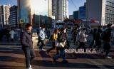 REPUBLIKA.CO.ID, JAKARTA -- Warga mengenakan masker beraktivitas di kawasan bisnis Beijing, China, (3/1/2023). Para ilmuwan telah memperingatkan China bahwa negara tersebut akan menghadapi beberapa gelombang infeksi COVID-19 karena varian Omicron bermutasi untuk menyebar lebih cepat dan menghindari kekebalan.