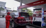 Petugas melayani warga mengisi BBM di salah satu SPBU di kawasan Senen, Jakarta, Selasa (3/1/2023). Pemerintah resmi mengumumkan penurunan harga BBM jenis Pertamax dari Rp 13.900 per liter menjadi Rp 12.800 per liter, Pertamax Turbo dari Rp 15.200 per liter menjadi Rp 14.050 per liter, Dexlite dari Rp 18.300 per liter menjadi Rp 16.150 per liter dan Pertamina Dex dari Rp 18.800 per liter menjadi Rp 16.750 per liter yang mulai berlaku per 3 Januari 2023 pukul 14.00 WIB. Republika/Putra M. Akbar (FOTO : Republika/Putra M. Akbar)