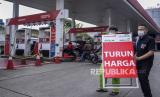 Harga BBM jenis Pertamax turun dari Rp 13.900 per liter menjadi Rp 12.800 per liter..