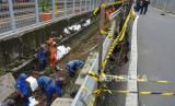 REPUBLIKA.CO.ID, JAKARTA -- Petugas gabungan dari Suku Dinas Sumber Daya Air (SDA) dan Penanganan Prasarana dan Sarana Umum (PPSU) membersihkan puing-puing turap penahan saluran air yang longsor di Kawasan Tebet Timur, Jakarta, Kamis (5/1/2023). Longsor dengan ketinggian sekitar 2 meter dan panjang 5 meter tersebut terjadi pada Rabu (4/1/2023) akibat oleh hujan deras yang mengguyur sejak siang hingga sore hari.