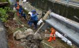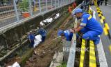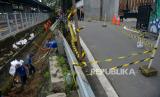 REPUBLIKA.CO.ID, JAKARTA -- Petugas gabungan dari Suku Dinas Sumber Daya Air (SDA) dan Penanganan Prasarana dan Sarana Umum (PPSU) membersihkan puing-puing turap penahan saluran air yang longsor di Kawasan Tebet Timur, Jakarta, Kamis (5/1/2023). Longsor dengan ketinggian sekitar 2 meter dan panjang 5 meter tersebut terjadi pada Rabu (4/1/2023) akibat oleh hujan deras yang mengguyur sejak siang hingga sore hari.