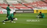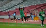 Penjaga Gawang Timnas Vietnam melakukan sesi latihan di Stadion Utama Gelora Bung Karno, Senayan, Jakarta, Kamis (5/1/2023). Babak semifinal leg pertama piala AFF 2022 antara Indonesia melawan Vietnam akan berlangsung pada Jumat (6/1/2023). Republika/Prayogi (FOTO : Republika/Prayogi.)