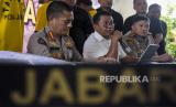 Direktur Ditreskrimsus Polda Jabar Kombes Pol Arif Rachman (tengah) didampingi Kabid Humas Polda Jabar Kombes Pol Ibrahim Tompo (kiri) memberikan keterangan pers saat ekspose pengungkapan kasus jual tanah aset desa di Mapolda Jabar, Jalan Soekarno Hatta, Kota Bandung, Kamis (5/1/2023). Direktorat Reserse Kriminal Khusus (Ditreskrimsus) Polda Jabar berhasil mengungkap kasus penjualan tanah aset desa seluas 4,7 hektare di Desa Cibogo, Kabupaten Bandung Barat dan mengamankan empat orang tersangka yakni MS selaku mantan Kepala Desa (Kades) Cibogo, AS selaku Kades Cibogo, AY Sekretaris Desa Cibogo, DSH selaku pihak ahli waris fiktif. Kasus tersebut merugikan negara sebesar Rp30 miliar. (FOTO : ABDAN SYAKURA/REPUBLIKA)