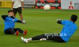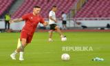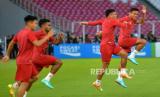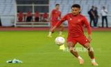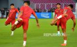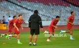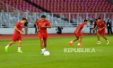 Pemain Timnas Indonesia melakukan sesi latihan di Stadion Utama Gelora Bung Karno, Senayan, Jakarta, Kamis (5/1/2023). Babak semifinal leg pertama piala AFF 2022 antara Indonesia melawan Vietnam akan berlangsung pada Jumat (6/1/2023). Pelatih Timnas Indonesia Shin Tae-yong menjanjikan permainan yang keren kepada para suporter saat skuad Garuda menghadapi Vietnam nanti. (FOTO : Republika/Prayogi.)
