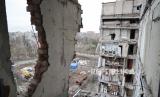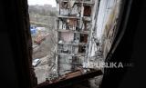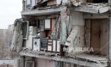REPUBLIKA.CO.ID, DONETSK -- Suasana pemandangan gedung apartemen yang rusak akibat pertempuran sengit di Mariupol, wilayah Donetsk yang dikuasai Rusia, Ukraina Timur, Kamis (5/1/2023).