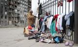 Seorang wanita lokal menjual pakaian bekas di Mariupol, wilayah Donetsk yang dikuasai Rusia, Ukraina timur, Kamis(5 Januari 2023). (FOTO : AP Photo/Alexei Alexandrov)