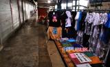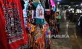 Pedagang menata cenderamata pakaian di los pedagang Tempat Khusus Parkir (TKP) Abubakar Ali, Yogyakarta, Jumat (6/1/2023). Hal ini terjadi sejak perubahan tata letak parkir setahun lalu. (FOTO : Republika/Wihdan Hidayat)