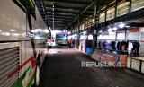Penjual cenderamata pakaian di los pedagang Tempat Khusus Parkir (TKP) Abubakar Ali, Yogyakarta, Jumat (6/1/2023). Pasalnya, tata letak baru ini menyebabkan kios terhalang bus yang parkir di depannya. (FOTO : Republika/Wihdan Hidayat)