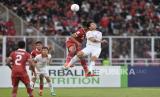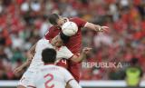 Pemain timnas Indonesia Jordi Amat melakukan duel udara dengan pemain Vietnam saat pertandingan semifinal leg pertama Piala AFF 2022 di Stadion Gelora Bung Karno, Senayan, Jakarta, Jumat (6/1/2023). Pertandingan berakhir imbang dengan skor 0-0. (FOTO : Republika/Edwin Dwi Putranto)