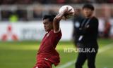 Pemain timnas Indonesia Pratama Arhan melakukan lemparan kedalam saat pertandingan semifinal leg pertama Piala AFF 2022 melawan Vietnam di Stadion Gelora Bung Karno, Senayan, Jakarta, Jumat (6/1/2023). Pertandingan berakhir imbang dengan skor 0-0. (FOTO : Republika/Edwin Dwi Putranto)