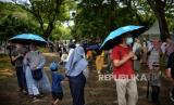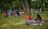 Pengunjung bersantai di bawah pohon di kawasan Monumen Nasional (Monas) di Jakarta, Ahad (8/1/2023). Selain menjadi tempat berswafoto, kawasan Monas juga bisa dimanfaatkan untuk menikmati ruang terbuka hijau, berkunjung ke museum Sejarah Nasional,  berkeliling kawasan Monas menggunakan kendaraan wisata serta berbelanja pernak pernik khas betawi.  (FOTO : Republika/Thoudy Badai)