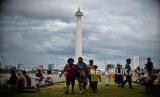 Kawasan Monas juga dimanfaatkan untuk menikmati ruang terbuka hijau..