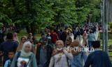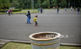Warga mengunjungi kawasan wisata Monumen Nasional (Monas) di Jakarta, Ahad (8/1/2023).  (FOTO : Republika/Thoudy Badai)