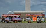 Pengunjung menaiki kendaraan wisata di Monumen Nasional (Monas) di Jakarta, Ahad (8/1/2023). Kawasan Monumen Nasional menjadi alternatif tempat wisata di DKI Jakarta untuk mengisi waktu akhir pekan bersama keluarga. \ (FOTO : Republika/Thoudy Badai)