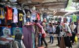Pengunjung berbelanja pakaian bergambar Monas di kawasan Monumen Nasional (Monas) di Jakarta, Ahad (8/1/2023).  (FOTO : Republika/Thoudy Badai)