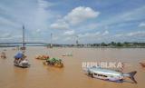 REPUBLIKA.CO.ID, JAMBI -- Peserta Lomba Perahu Hias menyusuri Sungai Batanghari, kawasan Tanggo Rajo, Jambi, Ahad (8/1/2023).