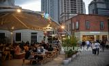 Warga mengunjungi salah satu pusat kuliner di Jakarta, Ahad (8/1/2023). Pusat gaya hidup yang dirancang dengan desain outdoor alfresco buka dari pukul 10.00 WIB pagi hingga pukul 22.00 WIB malam setiap hari. (FOTO : Republika/Thoudy Badai)