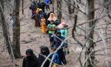 Sejumlah imigran etnis Rohingya berjalan usai terdampar di pantai di kawasan Gampong Baro, Kecamatan Baitussalam, Kabupaten Aceh Besar, Aceh, Ahad (8/1/2023). Sebanyak 184 orang imigran etnis Rohingya yang terdiri dari 69 orang laki-laki, 75 orang perempuan, dan 40 orang anak-anak terdampar di pantai di kawasan Gampong Baro, Kecamatan Baitussalam, Kabupaten Aceh Besar, Aceh. (FOTO : ANTARA FOTO)