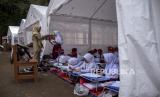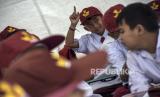 Sejumlah siswa mengikuti kegiatan belajar mengajar di tenda darurat saat hari pertama masuk sekolah di halaman SDN Citamiang, Jalan Loji, Pacet, Kabupaten Cianjur, Senin (9/1/2023). Sebanyak 262 siswa terpaksa belajar di tenda darurat pada hari pertama masuk sekolah karena bangunan sekolahnya terancam roboh akibat gempa bumi. (FOTO : ABDAN SYAKURA/REPUBLIKA)