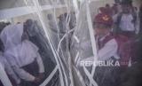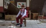 Seorang siswa berada di kelas yang rusak saat hari pertama masuk sekolah di halaman SDN Citamiang, Jalan Loji, Pacet, Kabupaten Cianjur, Senin (9/1/2023). Sebanyak 262 siswa terpaksa belajar di tenda darurat pada hari pertama masuk sekolah karena bangunan sekolahnya terancam roboh akibat gempa bumi. (FOTO : ABDAN SYAKURA/REPUBLIKA)
