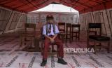 Seorang siswa berada di tenda darurat saat hari pertama masuk sekolah di halaman SDN Citamiang, Jalan Loji, Pacet, Kabupaten Cianjur, Senin (9/1/2023). Sebanyak 262 siswa terpaksa belajar di tenda darurat pada hari pertama masuk sekolah karena bangunan sekolahnya terancam roboh akibat gempa bumi. (FOTO : ABDAN SYAKURA/REPUBLIKA)