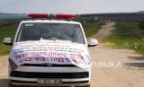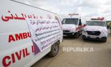 Aksi blokir kendaraan ambulans Palestina dilakukan untuk memprotes kebijakan pemerintah zionis Israel yang tidak mengizinkan mereka membawa peralatan medis ke rumah sakit di kawasan Gaza, Palestina.