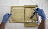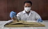 REPUBLIKA.CO.ID,BANDUNG -- Petugas merawat naskah kuno koleksi Museum Sri Baduga di Jalan BKR, Astanaanyar, Kota Bandung, Selasa (10/1/2023). Perawatan terhadap benda-benda koleksi museum tersebut untuk menjaga keutuhan dan kondisi serta menghindari kerusakan karena usia benda.