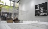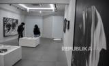 REPUBLIKA.CO.ID,BANDUNG -- Pengunjung mengamati karya seni yang dipajang pada pameran seni bertajuk Metamorfora di Galeri Ruang Dini, Jalan Anggrek, Bandung Wetan, Kota Bandung, Selasa (10/1/2023).