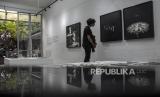 Pengunjung mengamati karya seni yang dipajang pada pameran seni bertajuk Metamorfora di Galeri Ruang Dini, Jalan Anggrek, Bandung Wetan, Kota Bandung, Selasa (10/1/2023). Pameran seni gabungan instrumen fotografi dan lukisan karya seniman Carla Agustian tersebut menampilkan karya seni yang mengusung tema renungan dan kondisi ruang sosial kehidupan saat ini. Pameran tersebut berlangsung hingga 29 Januari mendatang. (FOTO : ABDAN SYAKURA/REPUBLIKA)