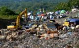 Alat berat meratakan tumpukan sampah di lokasi baru TPST Piyungan, Bantul, Yogyakarta, Kamis (12/1/2023). Pembuangan sampah di TPST Piyungan menggunakan lokasi baru di kiri tempat pembuangan yang lama. Lokasi lama sudah tidak pergunakan dan menjadi bukit karena ditimbun dengan tanah. Kondisi TPST Piyungan sudah melebihi kapasitas dan masa operasi akan berakhir pada tahun ini. (FOTO : Republika/Wihdan Hidayat)