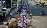 Jalan sehat diikuti oleh ribuan ASN dan sejumlah tokoh lintas agama dalam rangka memperingati Hari Amal Bhakti ke-77 Kementerian Agama.