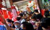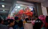 REPUBLIKA.CO.ID,JAKARTA -- Sejumlah warga mencari berbagai kebutuhan untuk perayaan Imlek di Kawasan Glodok Pancoran, Jakarta, Ahad (15/1/2022).