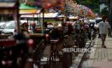 Kusir  melakukan penawaran kepada calon penumpang delman di kawasan Monas, Jakarta, Ahad (15/1/2023). Penjabat (Pj) Gubernur DKI Heru Budi Hartono memastikan delman tidak dilarang digunakan di Jakarta. Namun Pemprov DKI membatasi pengoperasian delman hanya di sekitar kawasan Monumen Nasional (Monas),Jakpus pada saat akhir pekan, yakni Sabtu dan Ahad. (FOTO : Republika/Prayogi.)