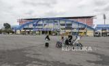 Warga beraktivitas di kawasan Stadion Kanjuruhan di Malang, Jawa Timur, Ahad (15/1/2023). Sidang perdana kasus Stadion Kanjuruhan akan dilaksanakan di Pengadilan Negeri Surabaya pada Senin (16/1/2023). Tragedi Stadion Kanjuruhan terjadi pada 1 Oktober 2022, saat berlangsungnya pertandingan antara Arema FC dan Persebaya. Sebanyak 135 orang meninggal dunia akibat tembakan gas air mata kepolisian ke tribun penonton yang menyebabkan kepanikan dan penonton saling berdesakan untuk menyelamatkan diri. (FOTO : EPA-EFE/MAST IRHAM)