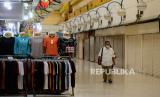 Warga berjalan di dekat baju yang dijual di Mal Blok M, Jakarta, Selasa (17/1/2023). Mal Blok M yang merupakan pusat perbelanjaan legendaris di Jakarta sejak tahun 1992 tersebut kini sepi dari pengunjung dan pedagang. Hal tersebut diakibatkan pergeseran tren pusat perbelanjaan disertai kehadiran pesaing dan tren digitalisasi penggunaan platform belanja online. (FOTO : Republika/Putra M. Akbar)